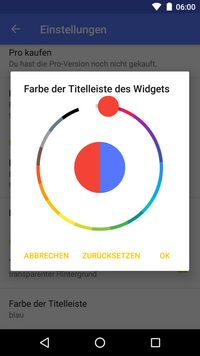 Mit dem heute erschienenen Update auf Version 3.1.0 gibt es neben der üblichen Behebung von Abstürzen und Darstellungsfehlern noch ein neues Feature für Nutzer der kostenpflichtigen Version Vertretungsplan Pro: Die Farbe der Titelleiste des Widgets kann jetzt in den Einstellungen verändert werden.