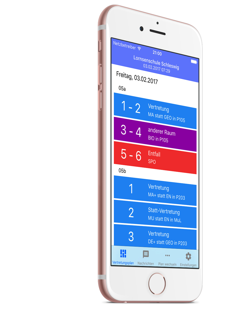 Nach einigen Monaten Arbeit ist die Vertretungsplan-App nun endlich auch für iPhone, iPad und iPod touch verfügbar. Wie auch auf Android ist die App kostenlos, zusätzliche Funktionen der Pro-Version lassen sich über einen In-App-Kauf freischalten. Für Schulen, die die Schullizenz der App gekauft haben, sind die Pro-Funktionen natürlich auch in der iOS-App kostenlos nutzbar.